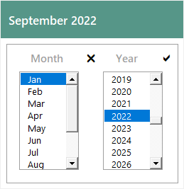 Added the ability to automatically set and scroll to the respective current Start Date of the Dialog in the Menu for the Month and Year ListBox Selections